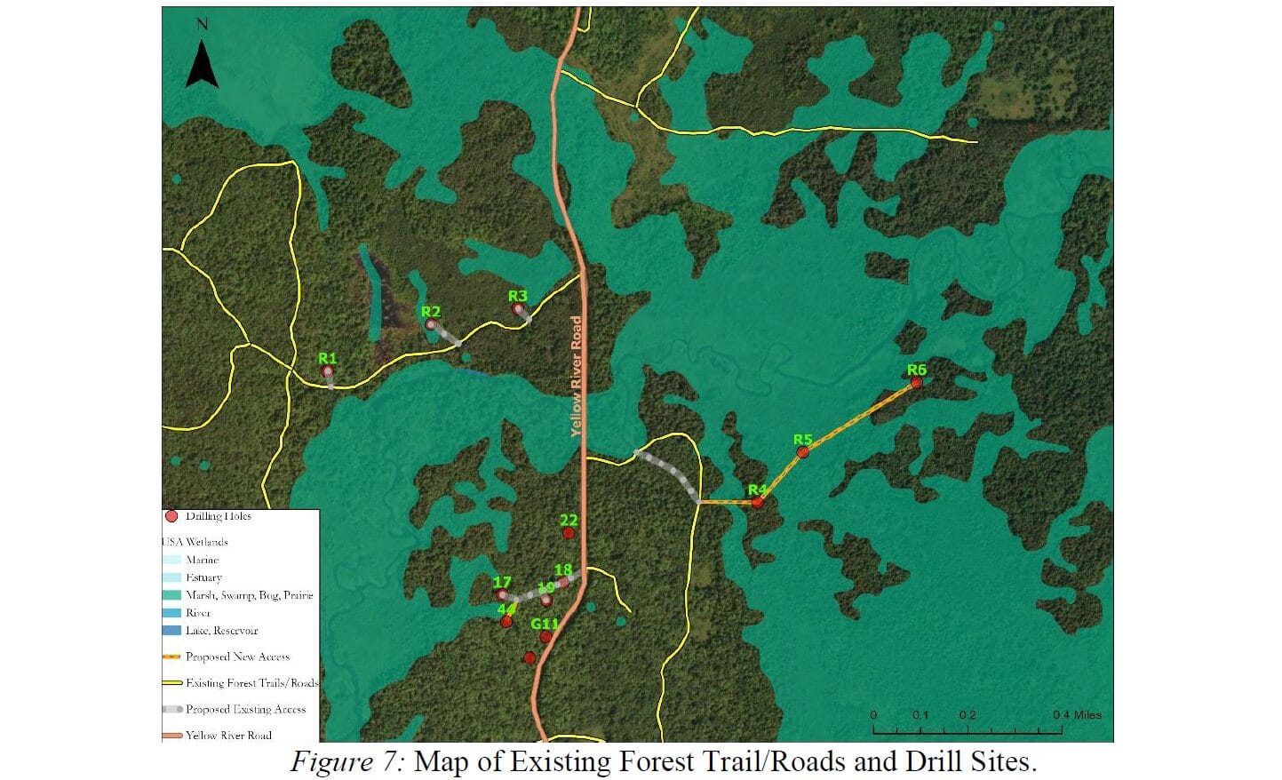 Image from our comment letter: Figure 7: Map of Existing Forest Trail/Roads and Drill Sites.